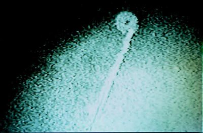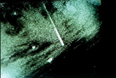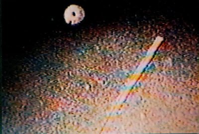NASA STS-75 ![]() Very large UFO passing by and then behind the 12-mile long tether on filmed after the tether break on STS-75, Februay 25, 1996. The video camera was being operated by astronaut Claude Nicolier ![]() Photo of the STS-75 mission showing a UFO and the tether. Note that the tether is between 77-100 nautical miles away from the shuttle Columbia. The tether is 12 miles long. The UFOs all pass "behind" the tether which allows us to view and measure their minimum sizes. Some are 2-3 miles minimum diamter